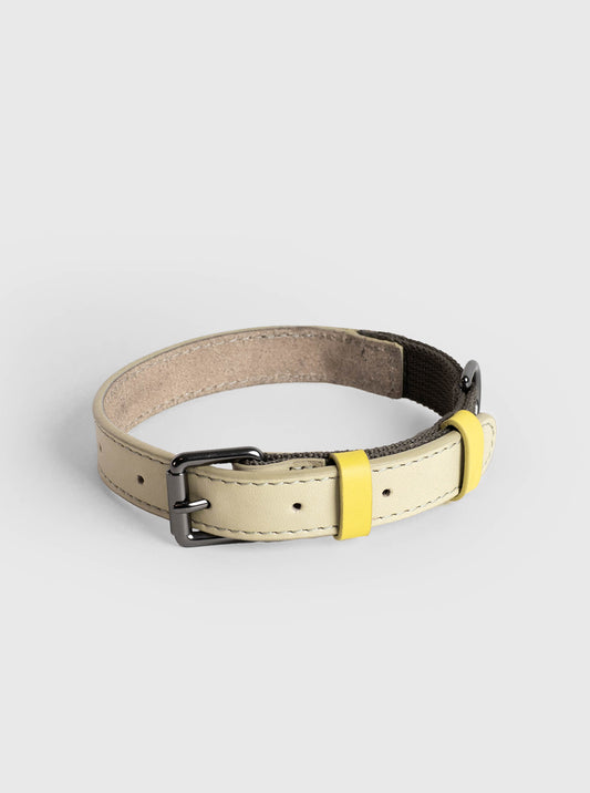 Colour Block serien kombinerar kromfritt full-grain läder från Skandinavien med återvunnen PET för ett halsband som är snyggt, bekvämt och hållbart.