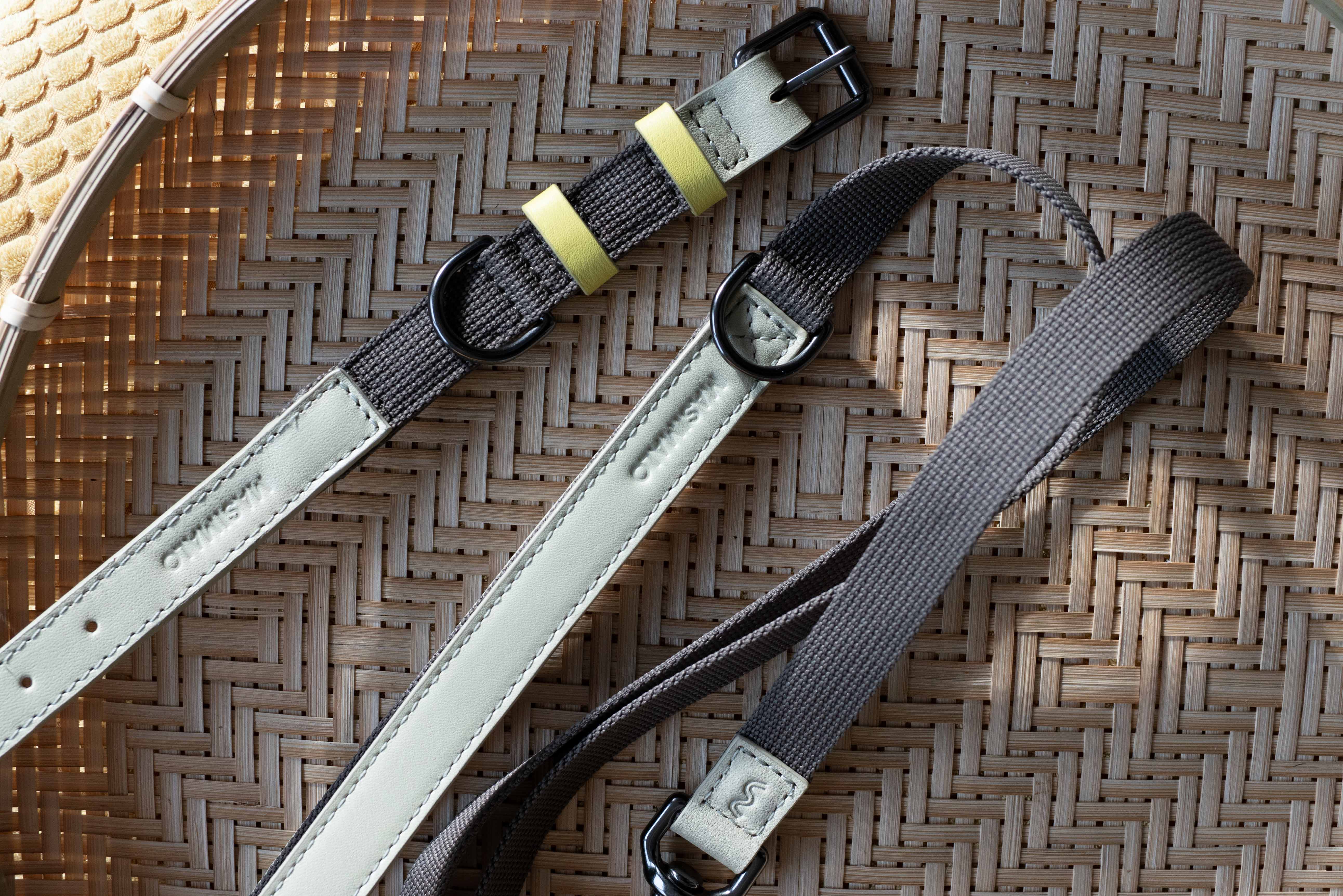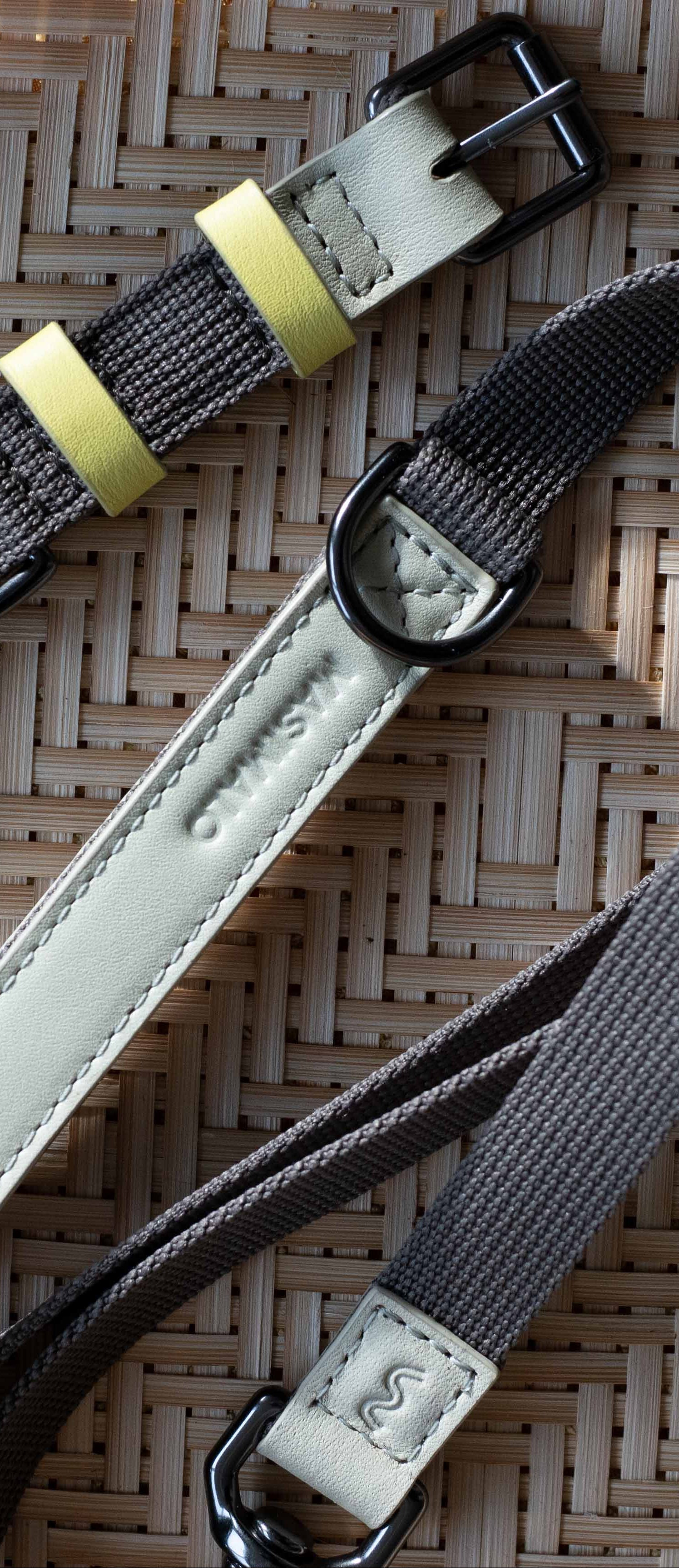 Colour Block serien kombinerar kromfritt full-grain läder från Skandinavien med återvunnen PET för ett koppel som är snyggt, bekvämt och hållbart. Metallen är solid mässing som är mycket stark och åldras vackert.